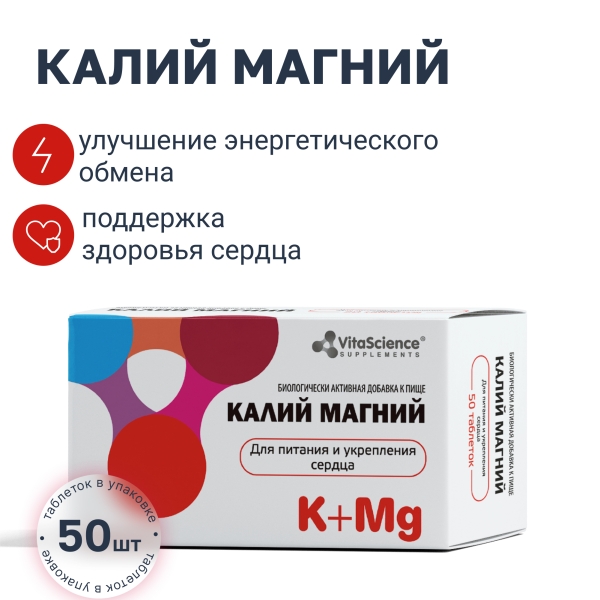 ✓ Купить Vitascience Калий Магний таблетки, №50 можно на сайте, в мобильном приложении и в аптеках Вита