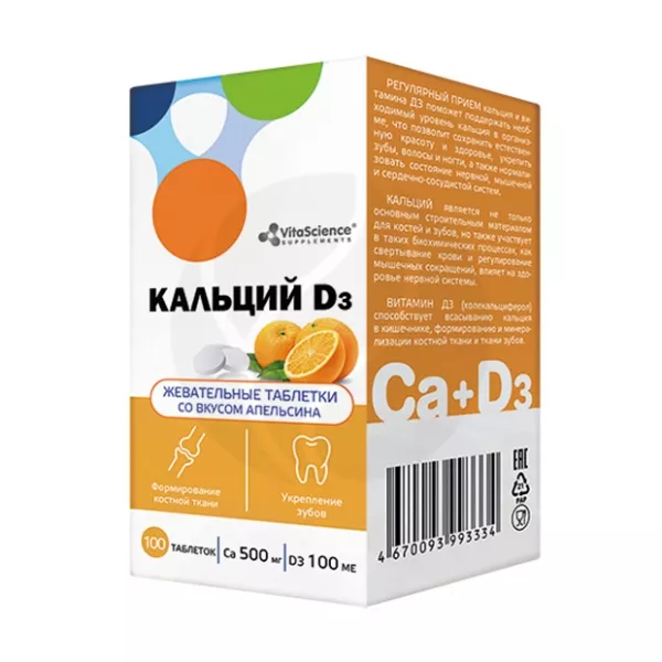 ✓ Цена на Vitascience Кальций-Д3 таблетки жевательные 500мг+100МЕ, №100 указана на сайте и в мобильном приложении