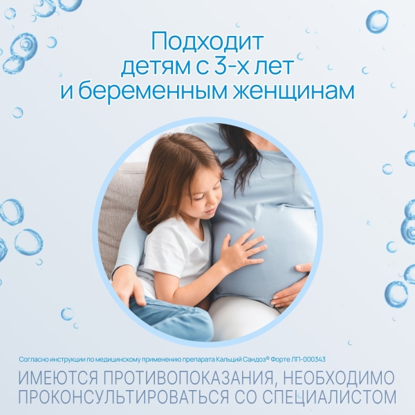Препарат Кальций Сандоз® Форте не рекомендуется для применения у детей в возрасте до 3-х лет в связи с отсутствием данных по эффективности и безопасности в данной категории.