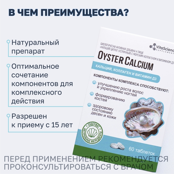 ✓ Купить Vitascience Кальций цитрат с коллагеном и витамином Д3 таблетки, №60 можно на сайте, в мобильном приложении и в аптеках Вита