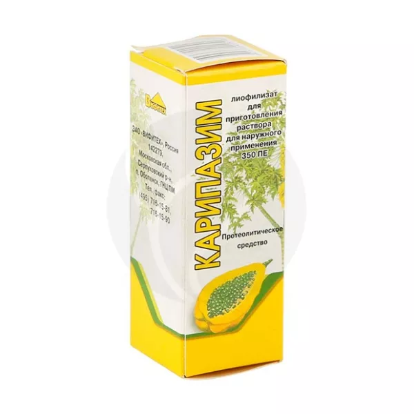 ✓ Цена на Карипазим лиофилизат д/р-ра для наружн. прим. 350ПЕ, №1 Вифитех указана на сайте и в мобильном приложении