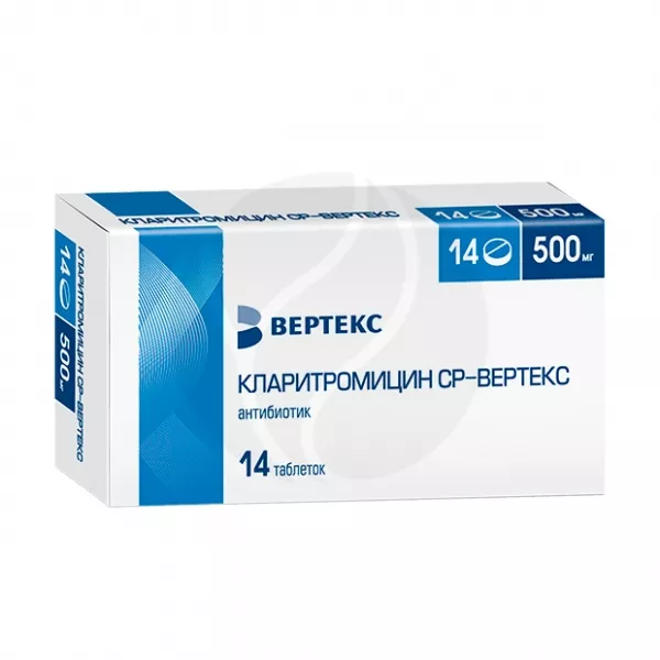 ✓ Цена на Кларитромицин СР-Вертекс таблетки с пролонг. высв. покрыт. п/о 500мг, №14 указана на сайте и в мобильном приложении