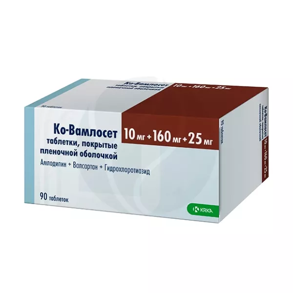 ✓ Купить Ко-вамлосет таблетки покрыт. п/о 10мг+160мг+25мг, №90 можно на сайте, в мобильном приложении и в аптеках Вита