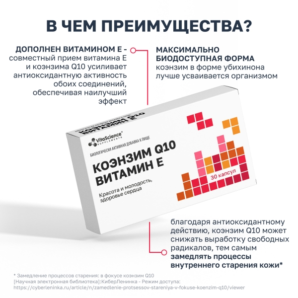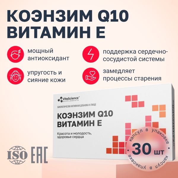 ✓ Купить Vitascience Коэнзим Q10 с витамином Е капсулы, №30 можно на сайте, в мобильном приложении и в аптеках Вита