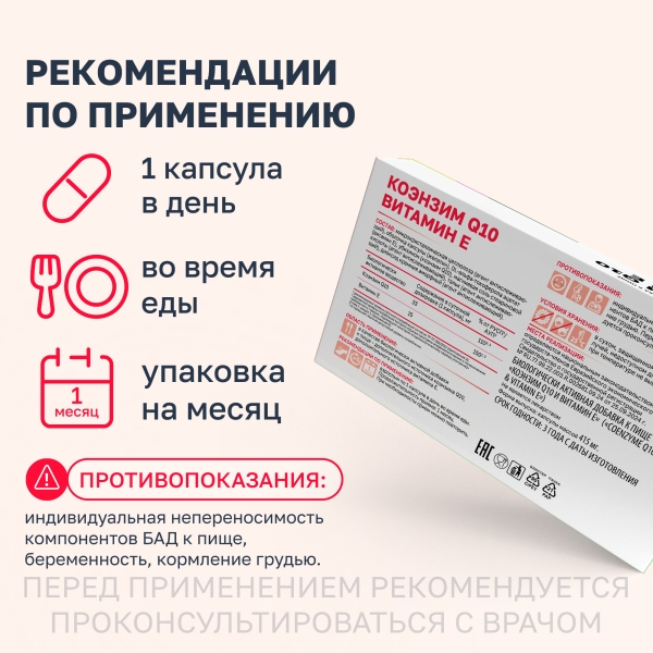 ✓ Подробная инструкция по применению Vitascience Коэнзим Q10 с витамином Е капсулы, №30