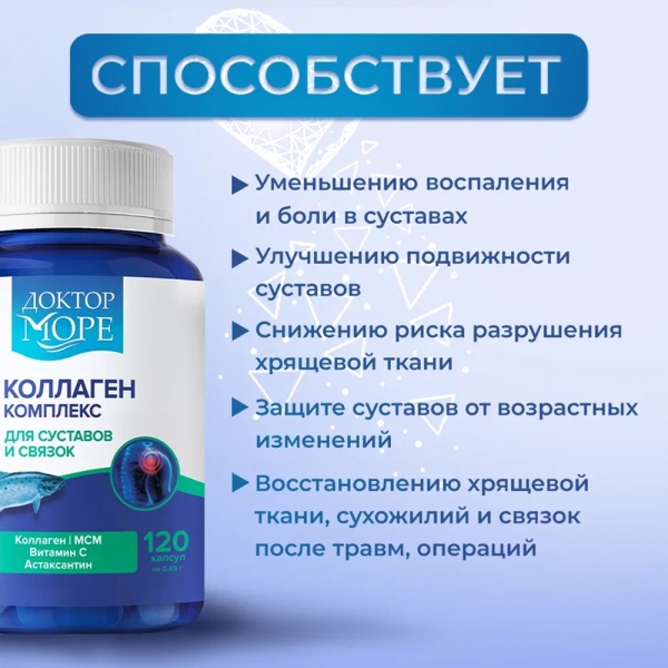 ✓ Подробная инструкция по применению Доктор Море Коллаген комплекс для суставов и связок капсулы, №120