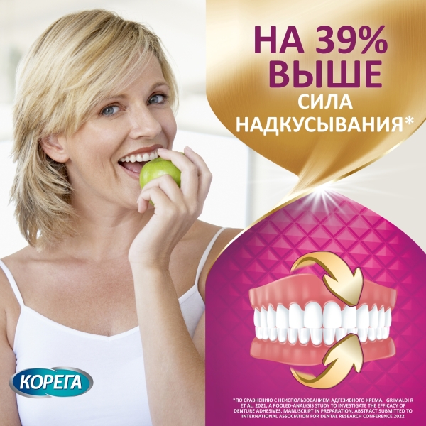 Надежная фиксация зубного протеза придаст вам уверенности и позволит заботиться о более важных вещах. Крем для фиксации зубных протезов Корега Комфорт повышает качество жизни людей, использующих зубные протезы:
