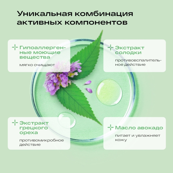 Гель моющий на основе натуральных компонентов для мягкого ежедневного очищения чувствительной кожи.