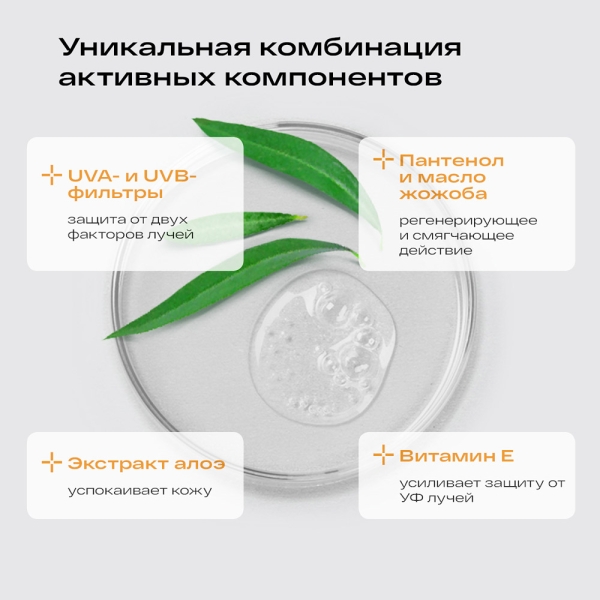 Молочко на основе комплекса натуральных компонентов для защиты кожи от воздействия солнечных лучей, учитывающее особенности нежной детской кожи.