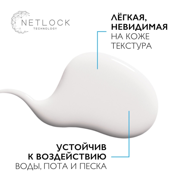 Специально разработанная формула для нежной и чувствительной кожи детей. Подходит для кожи, склонной к атопии. Технология Netlock обеспечивает устойчивость к воде, поту и песку.