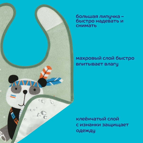 Нагрудник на липучке предназначен для защиты одежды ребенка от пролившейся жидкости и в период слюнотечения. Защищает одежду ребенка от пятен и запахов. Липучка имеет увеличенный размер для более прочной фиксации, позволяет легко зафиксировать нагрудник на шее ребенка и быстро снять изделие при необходимости.