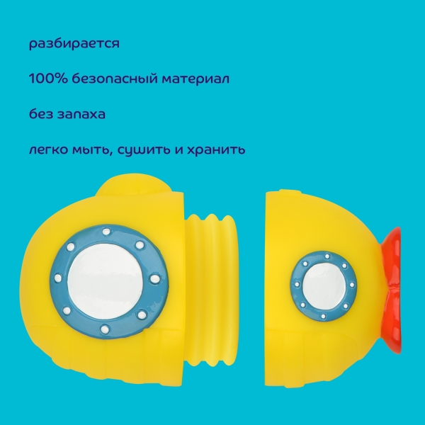 Из-за постоянного контакта с водой и неполного просыхания, в игрушках для купания может появляться плесень. Игрушки разработаны таким образом, что их можно разобрать, тщательно вымыть внутри и просушить, тем самым предотвращая появление плесени. Собрав целую коллекцию из 5 безопасных игрушек, соединяя их между собой, можно придумывать новых героев и истории. А еще они брызгаются.