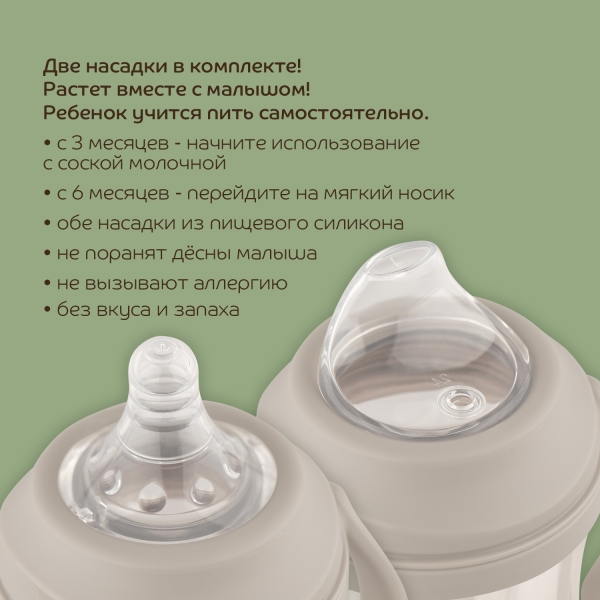 Материалы: поильник- бутылочка - полипропилен, носик - силикон, соска молочная - силикон