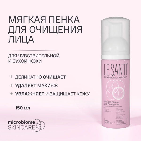 ✓ Купить LE SANTI Мягкая пенка очищающая для чувствительной и сухой кожи, 150мл можно на сайте, в мобильном приложении и в аптеках Вита