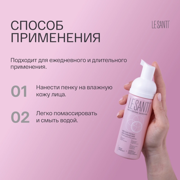 ✓ Подробная инструкция по применению LE SANTI Мягкая пенка очищающая для чувствительной и сухой кожи, 150мл