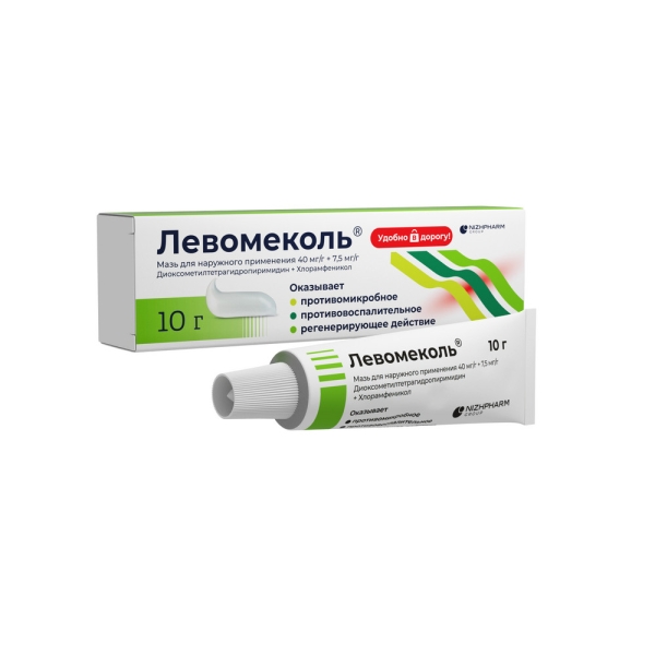 Левомеколь® содержит действующие вещества диоксометилтетрагидропиримидин и хлорамфеникол и относится к группе комбинированных препаратов, содержащих антибиотик для наружного применения.