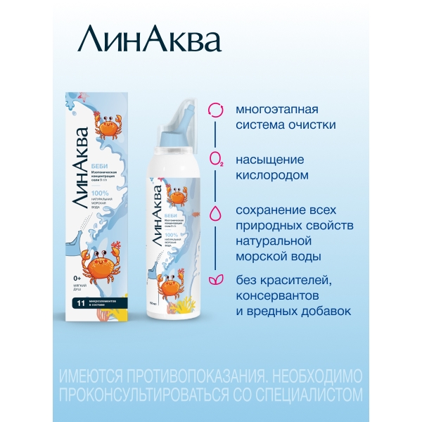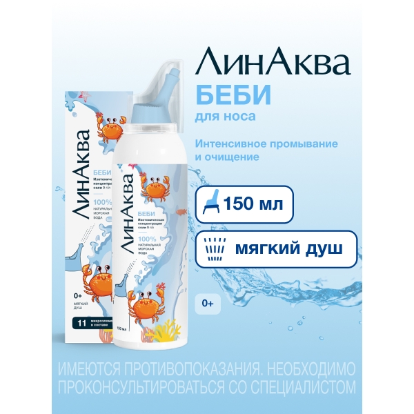 ✓ Цена на ЛинАква беби аэрозоль д/промыв. и орош. полости носа, 150мл указана на сайте и в мобильном приложении