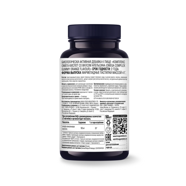 ✓ Подробная инструкция по применению Livs Комплекс омега-кислот мармеладные пастилки со вкусом апельсина, №50