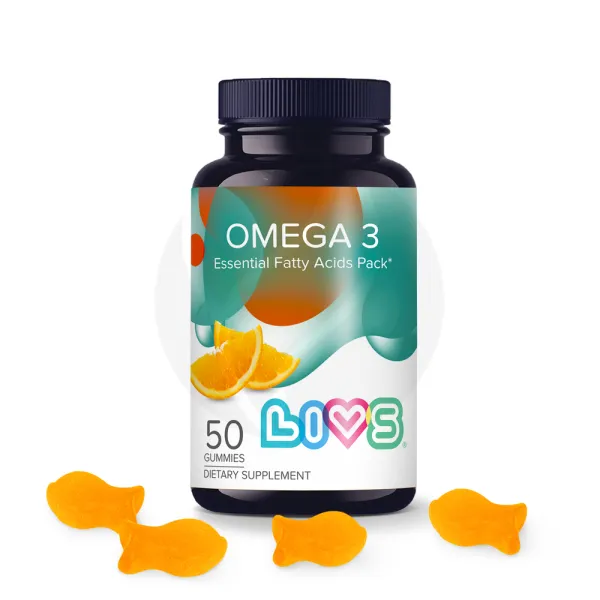 LIVS OMEGA 3 - это незаменимая омега-3 ПНЖК 100% растительного происхождения в мармеладных пастилках в виде рыбок. Яркий, сочный апельсиновый вкус пастилок, польза омега-3 и никакого неприятного вкуса и запаха.