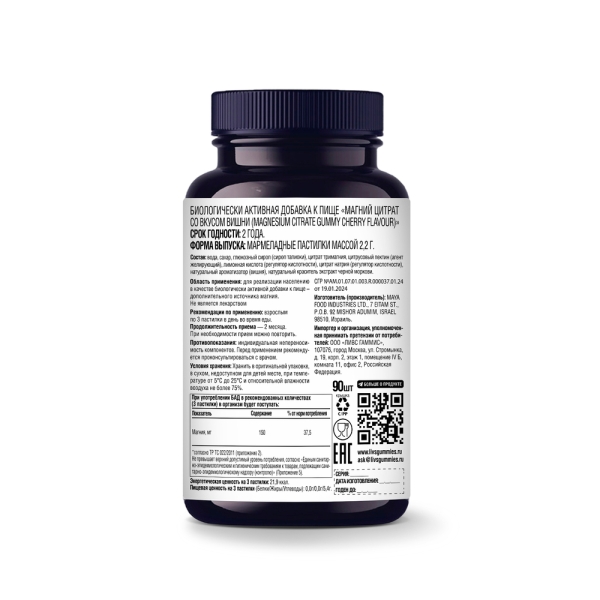 ✓ Подробная инструкция по применению Livs Магний цитрат мармеладные пастилки со вкусом вишни, №90