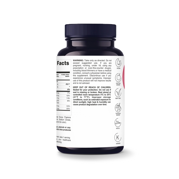 Сахар, сироп глюкозы (сироп тапиоки), вода, пектин, лимонная кислота (регулятор кислотности), никотинамид (витамин B3), L-аскорбиновая кислота (витамин C), цитрат натрия (регулятор кислотности), натуральный ароматизатор (клубника), концентрат сока черной моркови (натуральный краситель), пиридоксина гидрохлорид (витамин B6), фолиевая кислота (фолат), D-биотин, цианокобаламин (витамин B12).