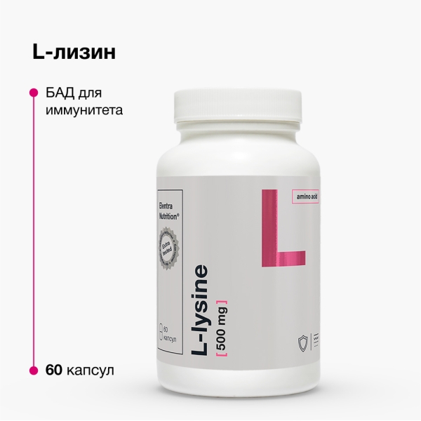 ✓ Купить Elentra Nutrition L-Лизин капсулы, №60 можно на сайте, в мобильном приложении и в аптеках Вита