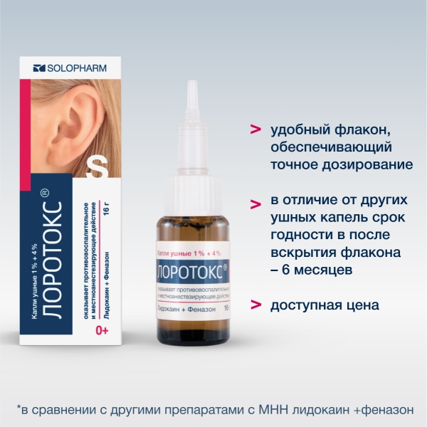 ✓ Цена на Лоротокс капли ушные, 16г указана на сайте и в мобильном приложении