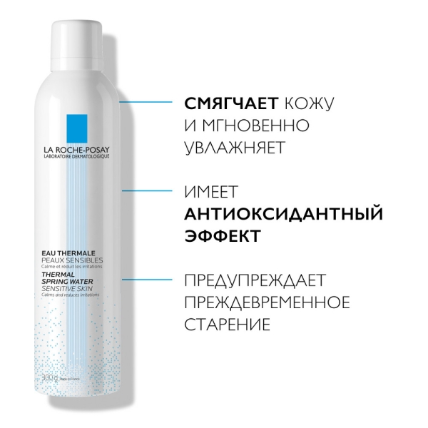 ТЕРМАЛЬНАЯ ВОДА LA ROCHE-POSAY Дерматологический активный компонент. Смягчает, увлажняет кожу. Нейтрализует действие свободных радикалов.