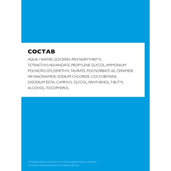 Формула обогащена Церамидом, способствующим поддержанию естественного защитного барьера для сохранения влаги в коже.
