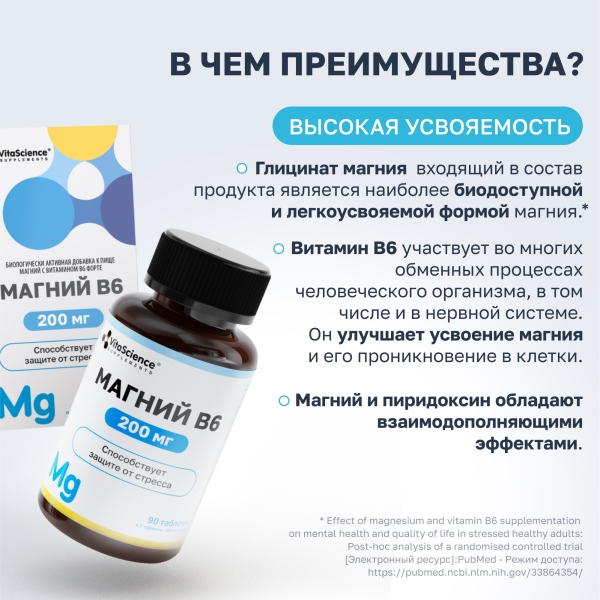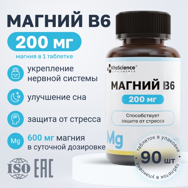 ✓ Купить Vitascience Магний B6 Форте таблетки 200мг+1,5мг, №90 можно на сайте, в мобильном приложении и в аптеках Вита