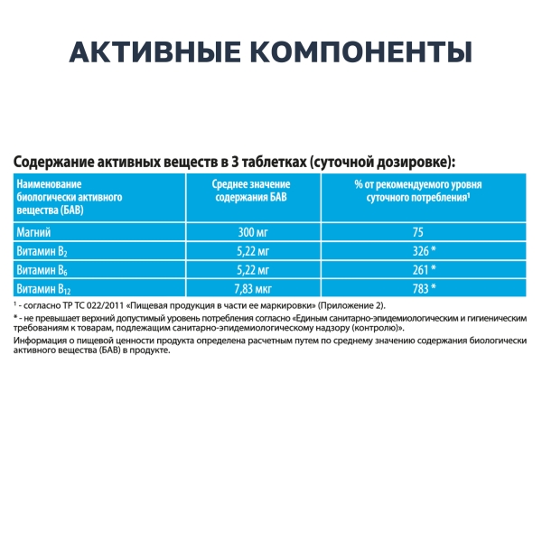 Содержание активных веществ в 3 таблетках (суточной дозировке):