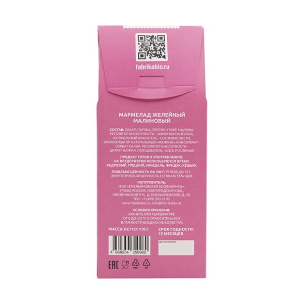 ✓ Цена на Мармелад желейный малиновый, 170г указана на сайте и в мобильном приложении