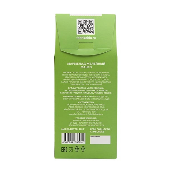 ✓ Цена на Мармелад желейный манго, 170г указана на сайте и в мобильном приложении