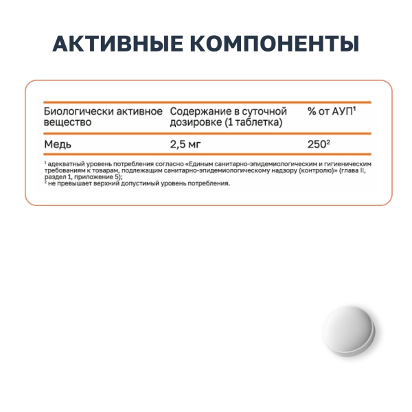 ✓ Подробная инструкция по применению Vitascience Медь хелат таблетки 2,5мг, №100