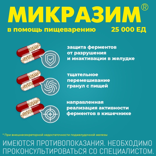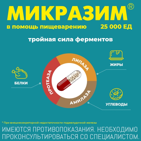 ✓ Подробная инструкция по применению Микразим капсулы 25000ЕД, №100