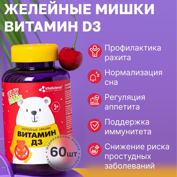 ✓ Купить Vitascience Мишки Витамин Д3 пастилки жевательные 600МЕ, №60 можно на сайте, в мобильном приложении и в аптеках Вита