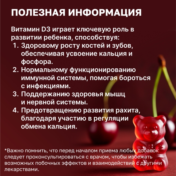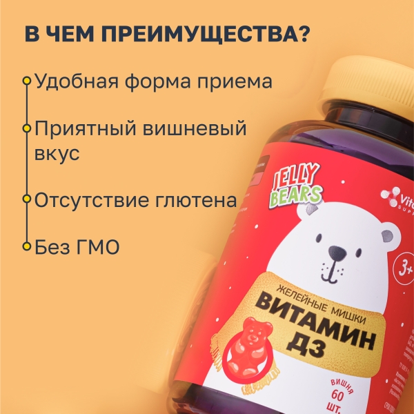 ✓ Подробная инструкция по применению Vitascience Мишки Витамин Д3 пастилки жевательные 600МЕ, №60