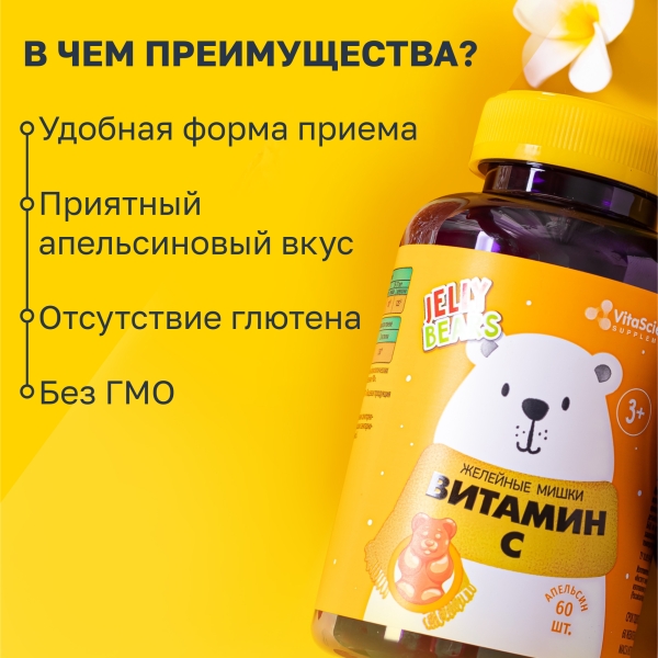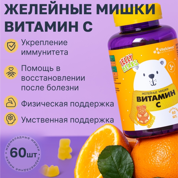 ✓ Купить Vitascience Мишки Витамин С пастилки жевательные 75мг, №60 можно на сайте, в мобильном приложении и в аптеках Вита