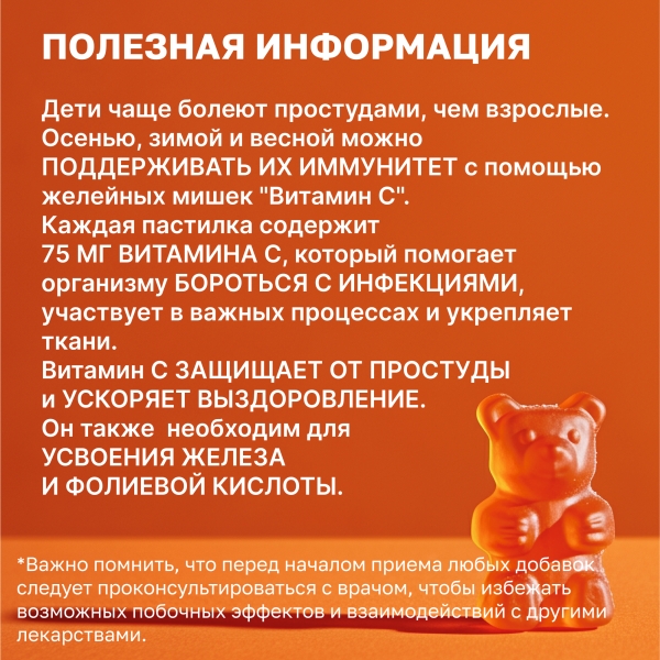 ✓ Подробная инструкция по применению Vitascience Мишки Витамин С пастилки жевательные 75мг, №60