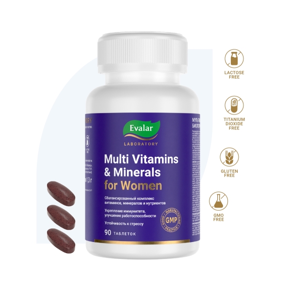 ✓ Купить Эвалар Лаборатория Мультивитамины и минералы женские таблетки п/о, №90 можно на сайте, в мобильном приложении и в аптеках Вита