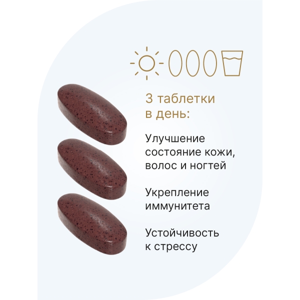 Магния цитрат, кальция карбонат, целлюлоза микрокристаллическая (носитель), мальтодекстрин, кальция бисглицинат, магния бисглицинат, аскорбиновая кислота, кроскарамеллоза (носитель); компоненты пленочного покрытия (пищевые добавки): гидроксипропилметилцеллюлоза (загуститель), твин 80 (эмульгатор), полиэтиленгликоль (глазирователь), свеклы экстракт (краситель натуральный); железа бисглицинат, цинка бисглицинат, альфа-токоферола ацетат, боровой матки экстракт, стеарат кальция и диоксид кремния аморфный (агенты антислеживающие), холина битартрат, бета-каротин, молибдат натрия, крахмал кукурузный, никотинамид, марганца бисглицинат, гиалуроновая кислота, инозитол, клюквы экстракт, витекса священного экстракт, брокколи, спирулины концентрат, меди бисглицинат, пантотенат кальция, холекальциферол, гесперидин, менахинон-7, шпинат, коэнзим Q10, пиридоксина гидрохлорид, тиамина гидрохлорид, рибофлавин, ретинола ацетат, кератин, йодказеин, хрома пиколинат, керамиды, фолиевая кислота, селексен (селеноксантен), метилкобаламин, биотин.