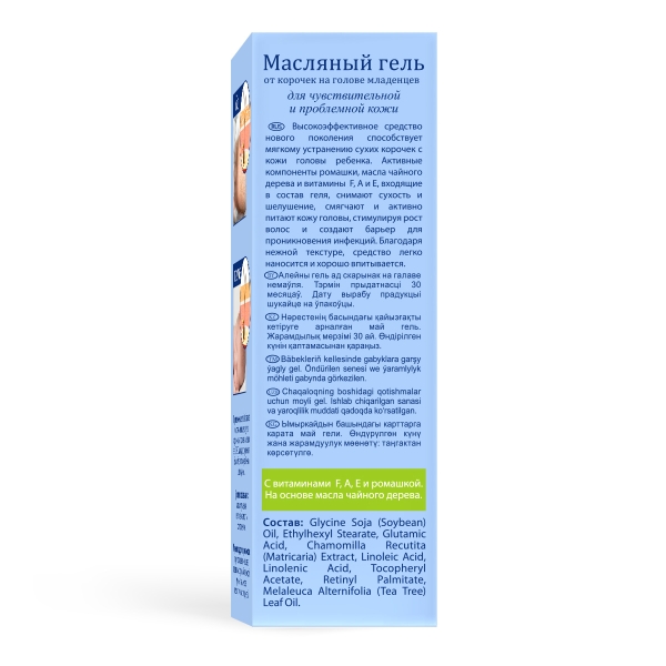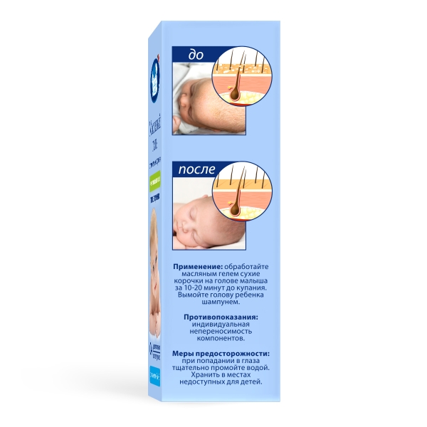 Масляный гель от корочек на голове младенца высокоэффективное средство нового поколения, для комплексного ухода за кожей и способствует мягкому устранению сухих корочек с кожи головы ребенка. Активные компоненты ромашки, масла чайного дерева и витамины F, A и E входящие в состав геля, снимают сухость и шелушение, смягчают и активно питают кожу головы, стимулируя рост волос и создают барьер от проникновения инфекций. Благодаря удобному дозатору и особой нежной текстуре, средство легко наносится и хорошо впитывается. Рекомендован для детей с сухой, чувствительной и проблемной кожей с первых дней жизни.