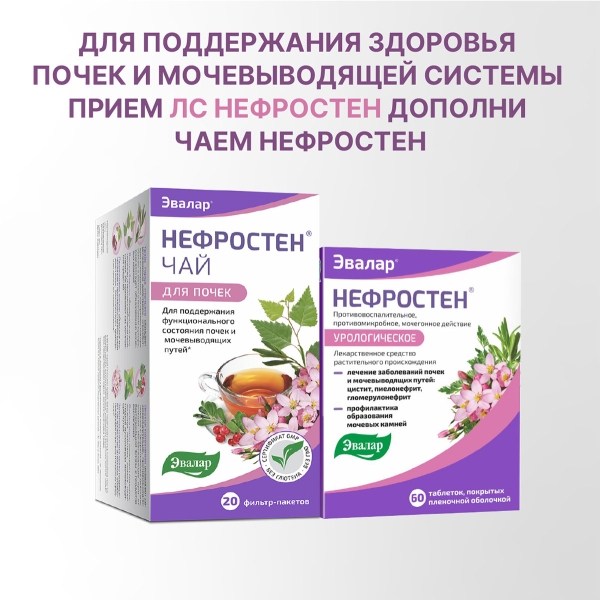 ✓ Подробная инструкция по применению Эвалар Нефростен таблетки покрыт. п/о, №60