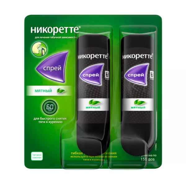 ✓ Цена на Никоретте спрей д/местн. прим. мятный 1мг/доза, №2 указана на сайте и в мобильном приложении