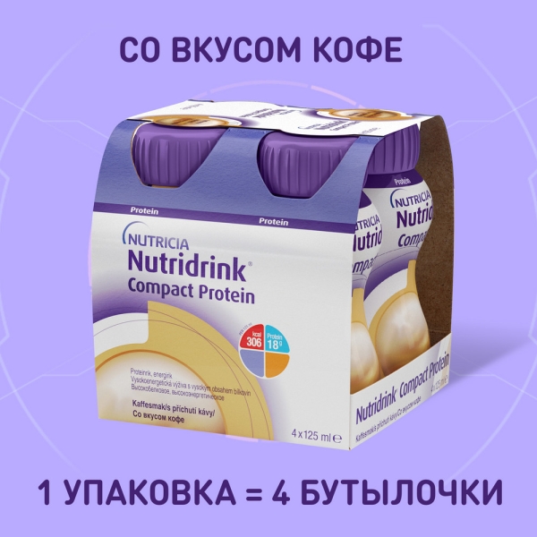 ✓ Цена на Nutridrink Compact Protein смесь со вкусом кофе 125мл, №4 указана на сайте и в мобильном приложении
