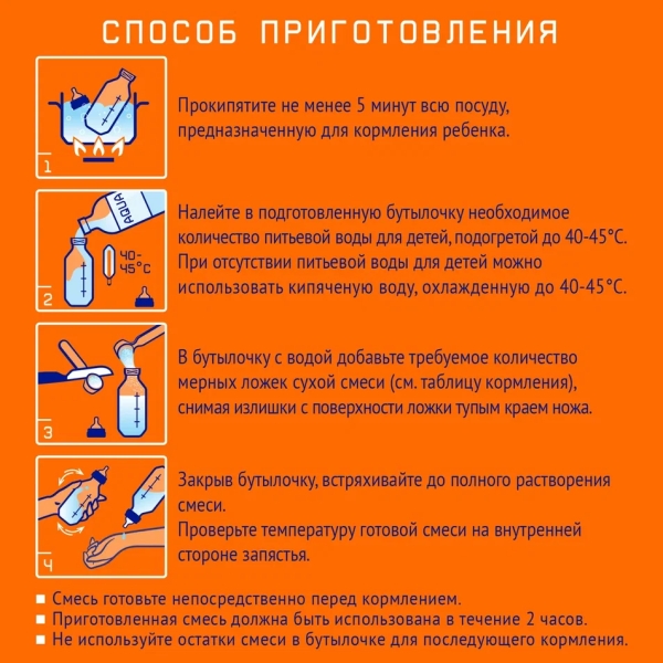 Не используйте остатки готовой смеси в бутылочке для последующего кормления.