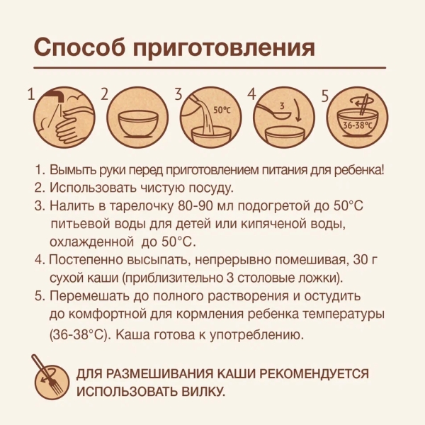 Цельное молоко – источник высококачественного молочного белка и витаминов, что повышает питательную ценность каши. Молочная сыворотка придает каше натуральный сладкий вкус за счет регулировки соотношения между казеином и сывороточным белком в составе. Фруктовые хлопья знакомят с новыми ощущениями, расширяют вкусовую палитру малыша.