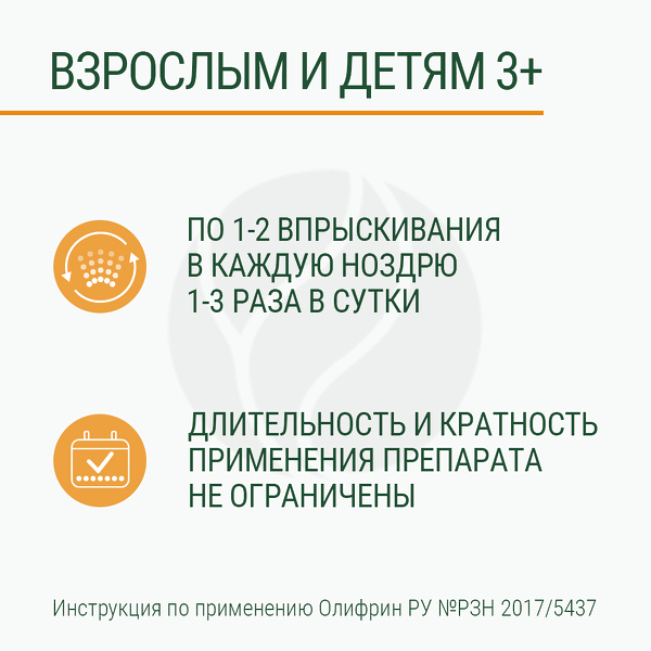 ✓ Подробная инструкция по применению Олифрин спрей для увлажнения слизистой носа, 15мл