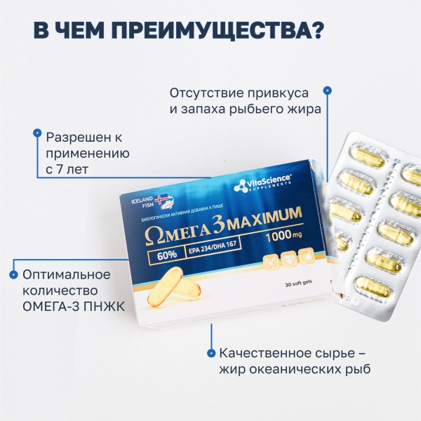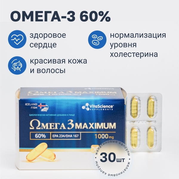 ✓ Цена на Vitascience Омега -3 60% Максимум капсулы, №30 указана на сайте и в мобильном приложении