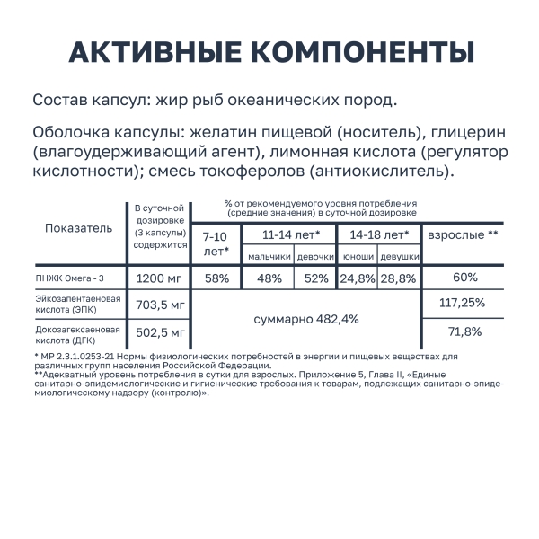 В суточной дозировке (3 капсулы) содержится: